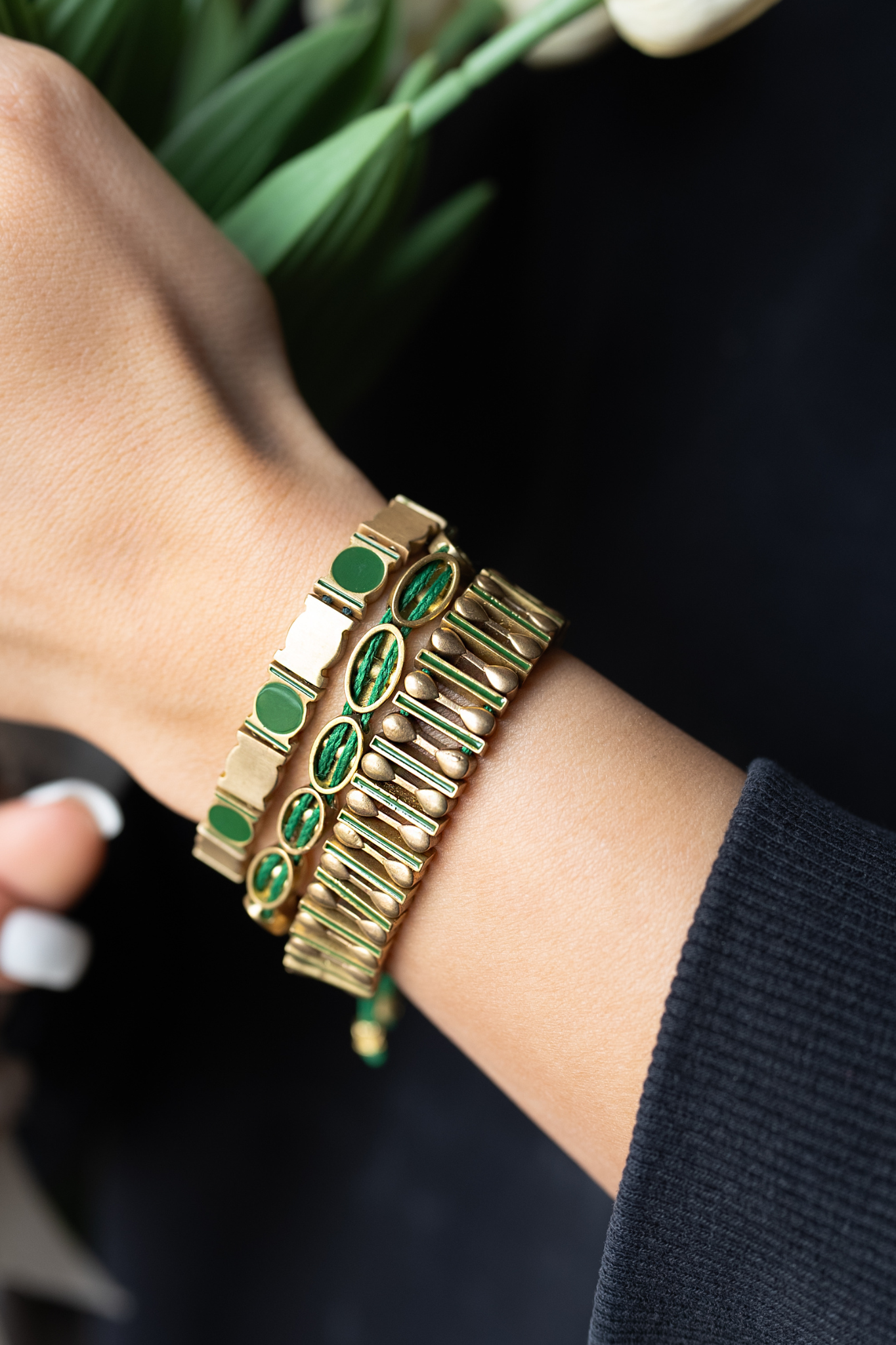Thus, Salim designed bracelets made of bronze elements, decorated with enamel symbols — the same little diamonds and triangles from his school notebooks. He found artisans to bring the idea to life, and each bracelet became a unique rhythm of 30–75 elements connected together. It was art, music, and freedom at once.